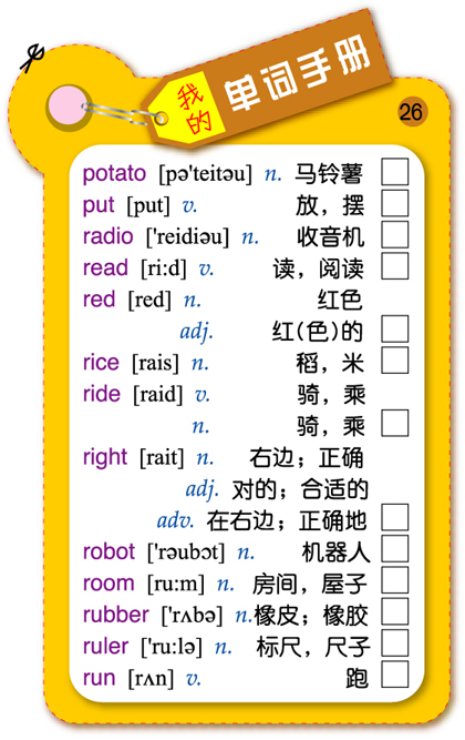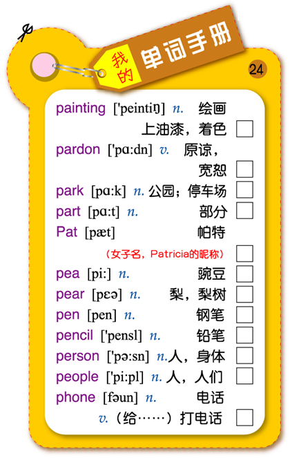 学习单词一刻都不能停哦!新学期的第一组单词卡片,快快打印下来放到你的单词手册里面吧!一定要全部学会、记牢哦!!